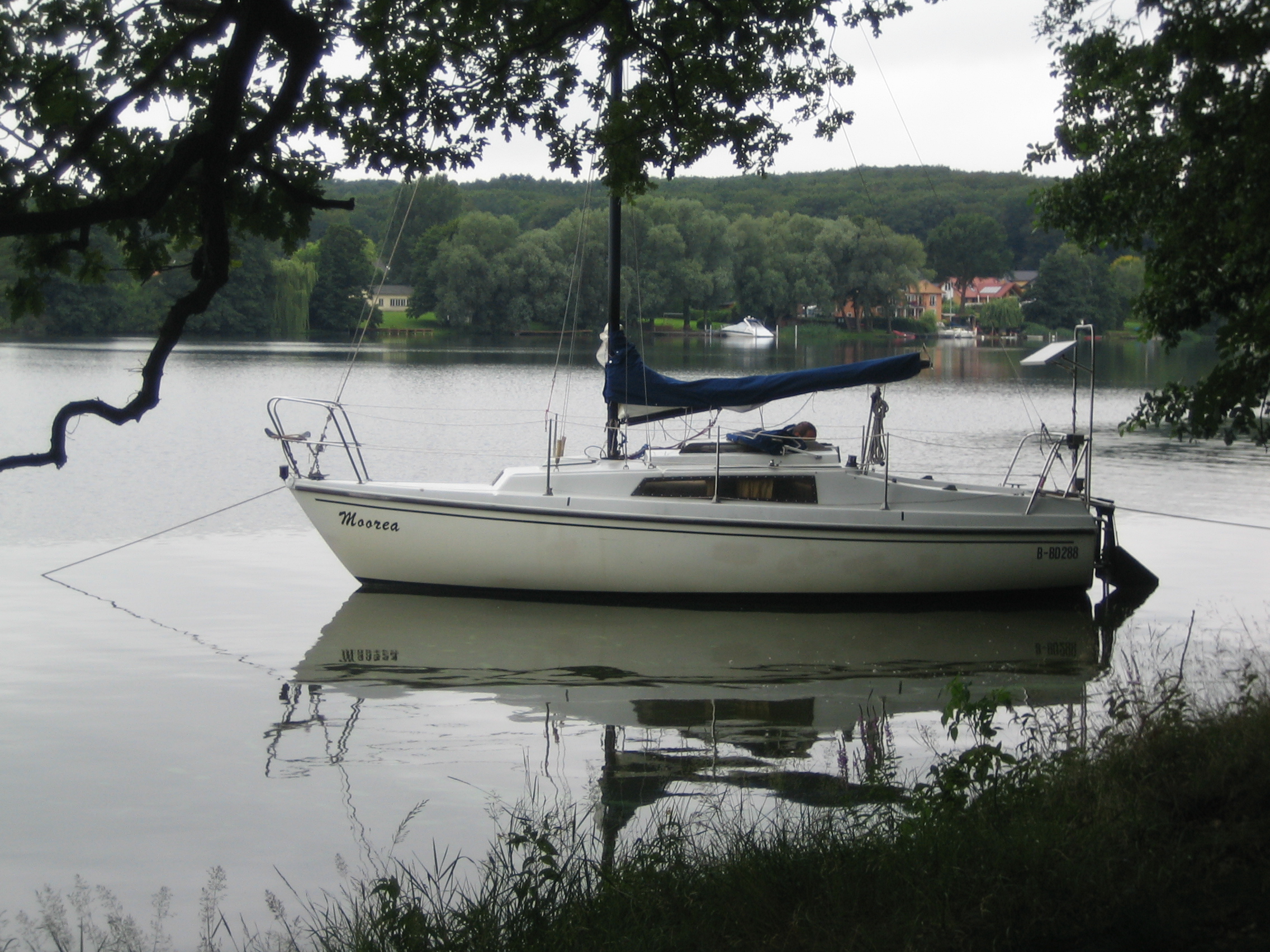 …eigene Boote haben wir natürlich auch. Als unser Flagschiff bezeichnen wir unsere MOOREA, eine Neptun 22. Sie hat von uns ein neues Schwert und einen Anti-Rost-Anstrich für den Kiel bekommen. Ausserdem haben wir eine Mastlegevorichtung nachgerüstet und ein Solarpanel angeschlossen.